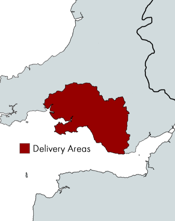 Our standard delivery area covers the following locations: