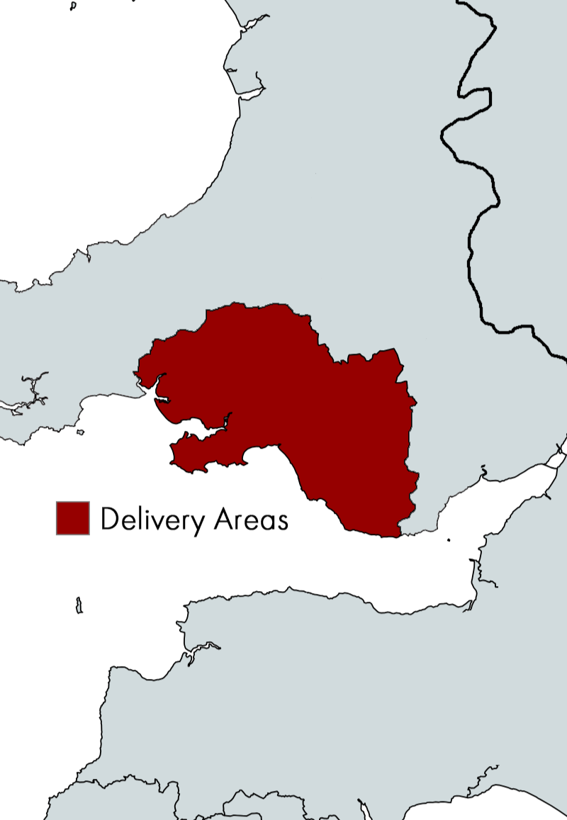 Yes, we offer a delivery service across a wide area of South West and South Wales, covering the following towns and their surrounding communities: